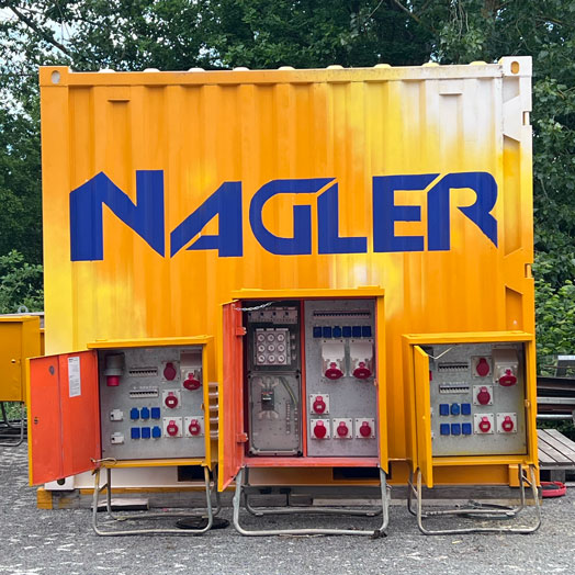 Durch die enge Zusammenarbeit mit der Firma Nagler Elektrotechnik GmbH können wir Ihnen den Komplettservice bei der Stromversorgung bieten und den Aufwand bei Aufträgen minimieren, die über die Baustromstationen hinausgehen. Unnötige Abstimmungsprozesse, die Zeit kosten, lassen sich somit vermeiden. Damit bleibt alles im Plan und Projekte werden noch reibungsloser abgewickelt: Dazu gehören u.a. Leistungen wie Kabelverlege-Arbeiten und Kabelzug per Winde mit Kabelzugprotokoll, Trafostationsbau und -wartungen, diverse Anschlussarbeiten bis hin zu Mittelspannungs- und Elektromontagen. Die Nagler Elektrotechnik GmbH übernimmt für Sie außerdem alle organisatorischen und administrativen Aufgaben zum Aufstellen sowie Rückbau der Stationen.